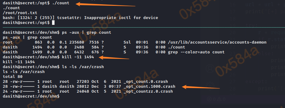 0600权限无法直接读/proc/<PID>/exe来获取字符串,但当时我忘记 core dump 是否可用了,知道今天整理这个 Writeup 时才后知后觉想起来。因为我做题的时候都只留过程截图,文字都是想发文章时才码的,导致有些内容笔记中搜索不到。