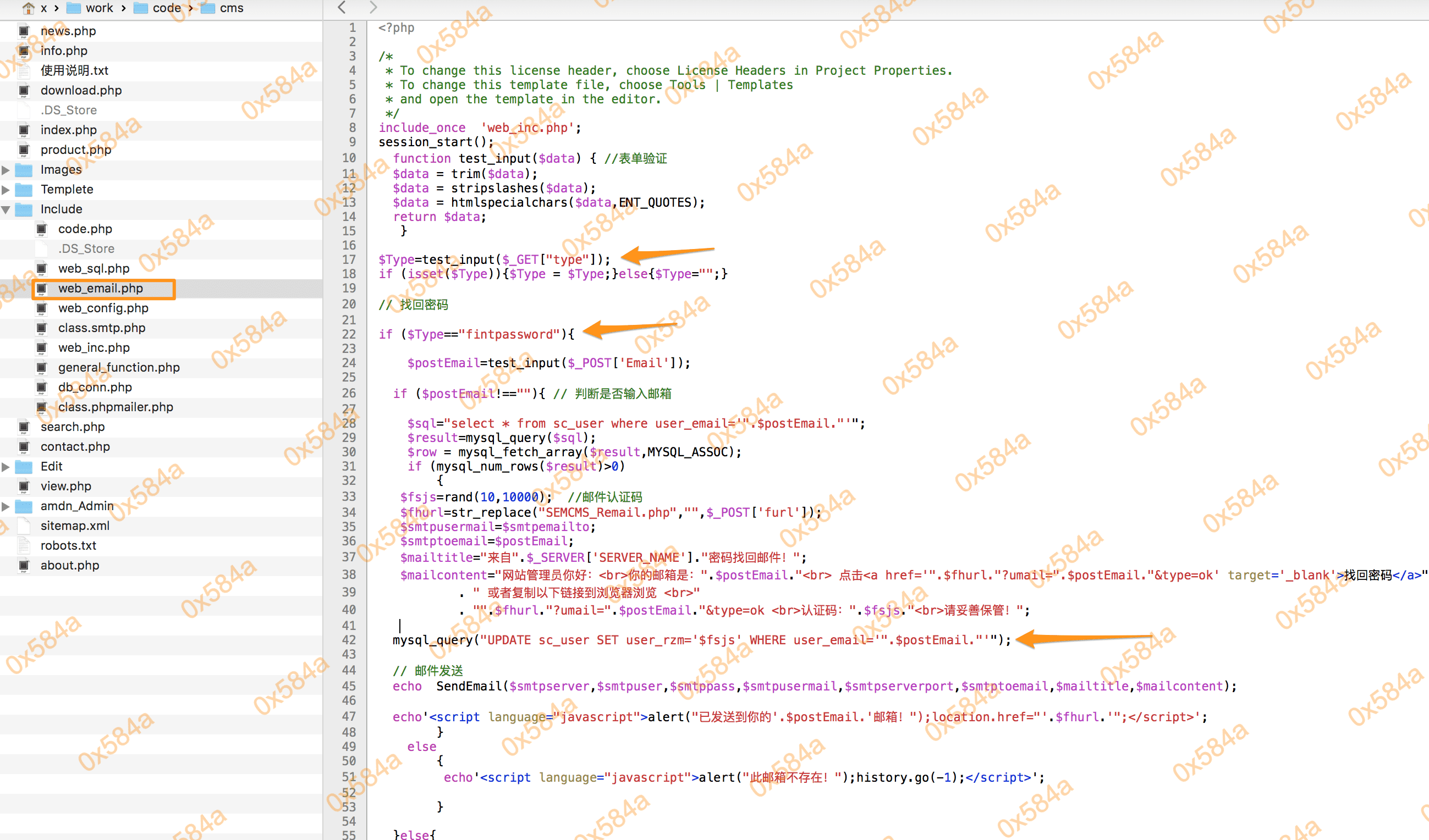 定位到找回密码的代码块在 Include/web_email.php 文件中