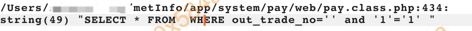 方法内部,$out_trade_no 变量直接拼接进了sql语句中: