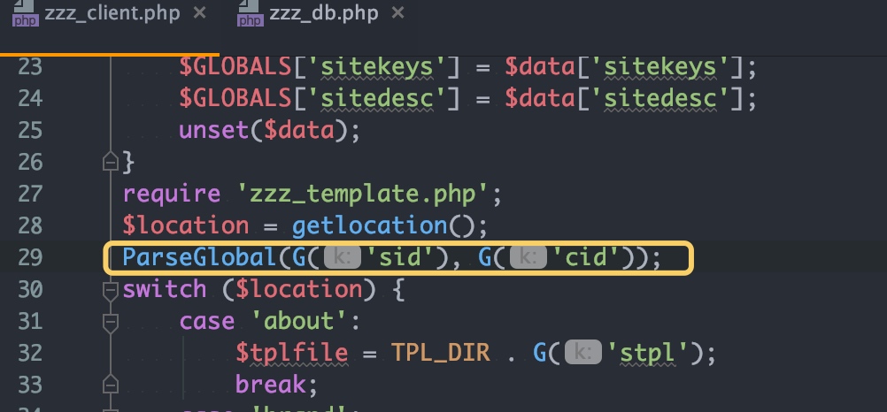 接下来就是向上查找传递的 $sid、$cid ,注意到在进 ParseGlobal() 时,先用了 G() 方法,而它实践上是在获取 $GLOBALS['sid']。