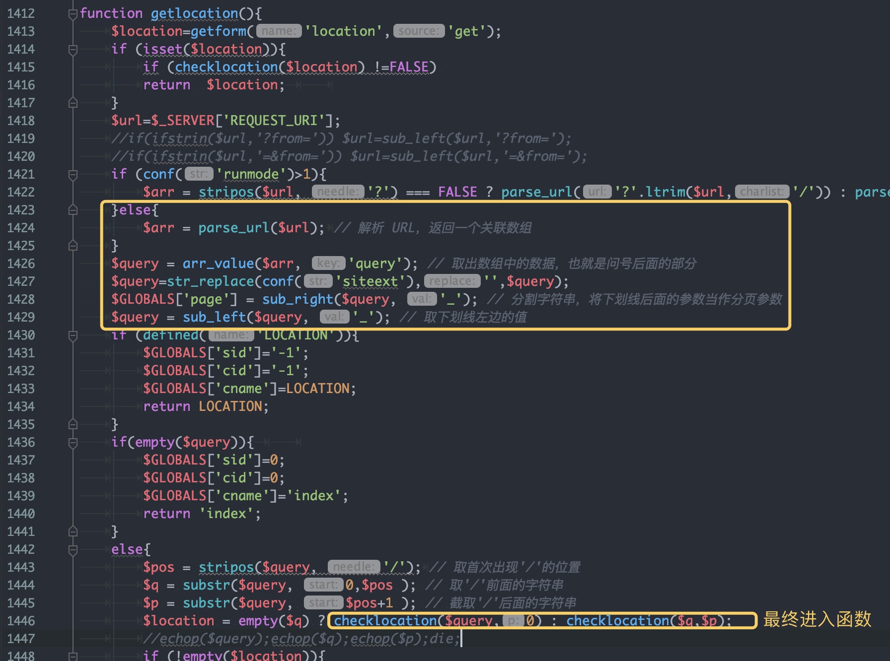 随后在 ParseGlobal(G('sid'), G('cid')); 的上面一行,$location = getlocation(); 中找到了 sid。