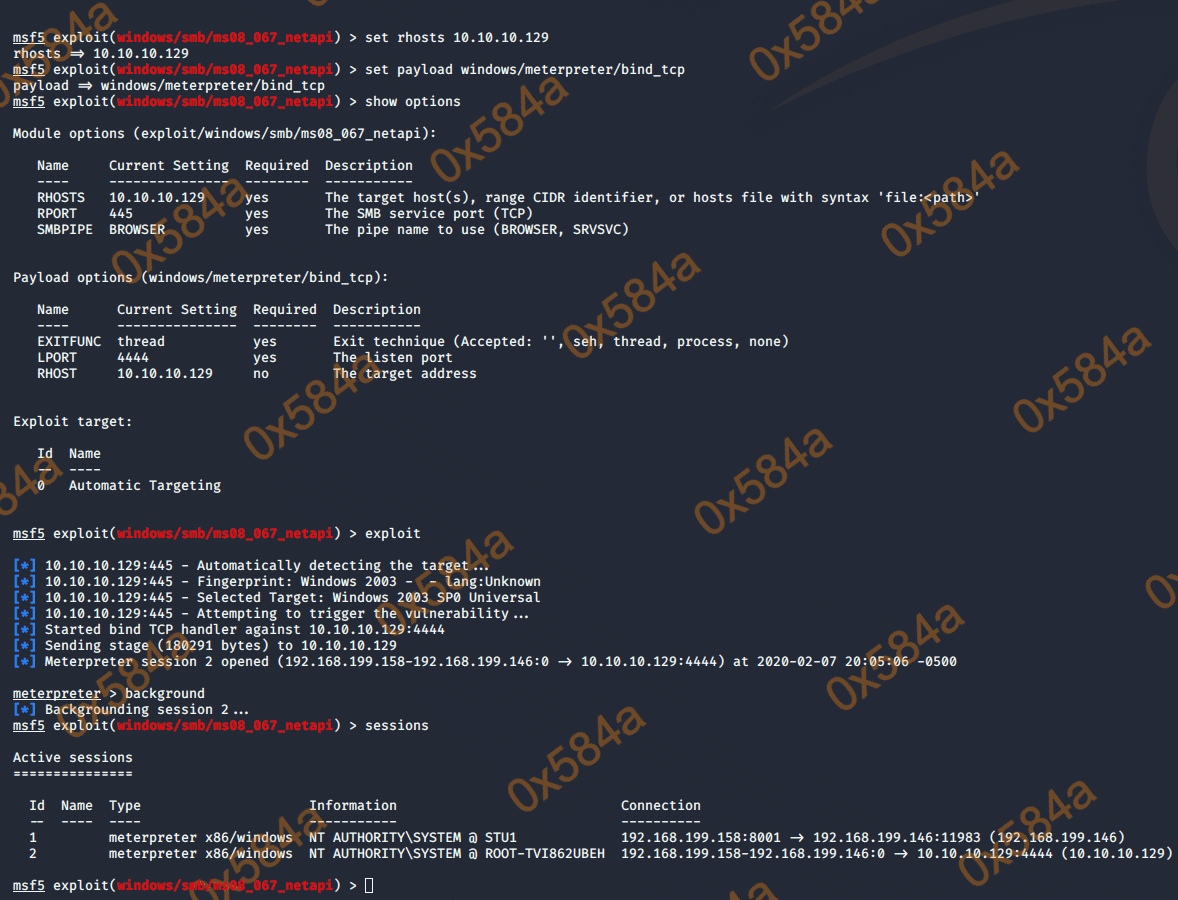 这里能攻上线是因为 MS08-067 with Bind TCP
