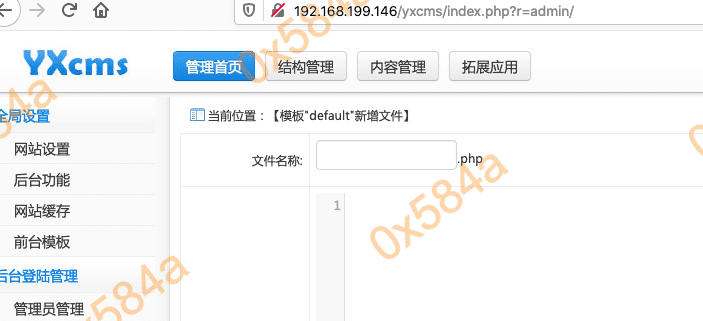 对应的入口就是 /yxcms/index.php?r=admin/set/tpadd&Mname=default