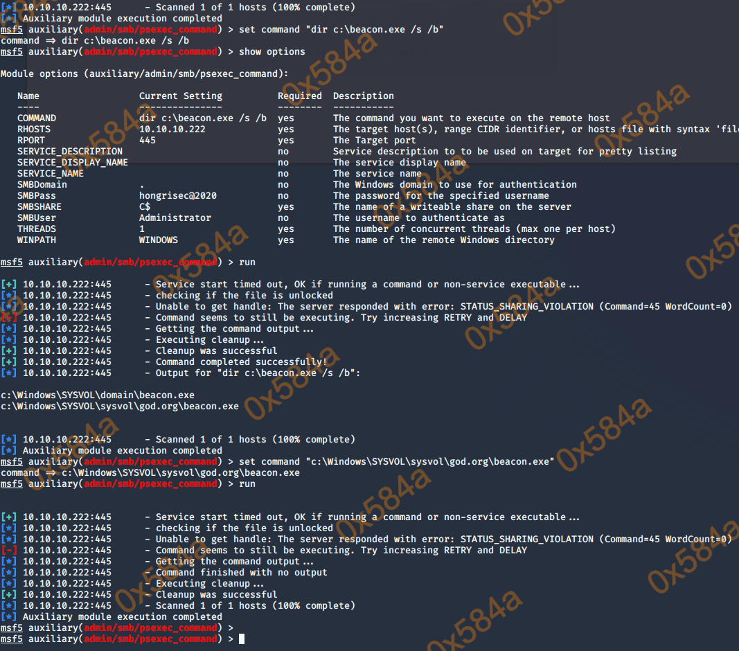 通过 smb/psexec_commad 搜索上传木马的绝对路径