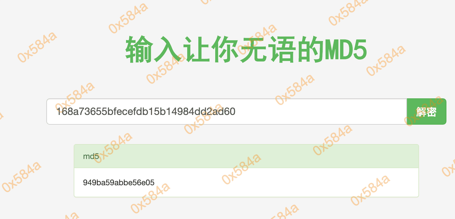从 phpmyadmin 中找到的管理员密码对其进行解密,168a73655bfecefdb15b14984dd2ad60 —> 949ba59abbe56e05