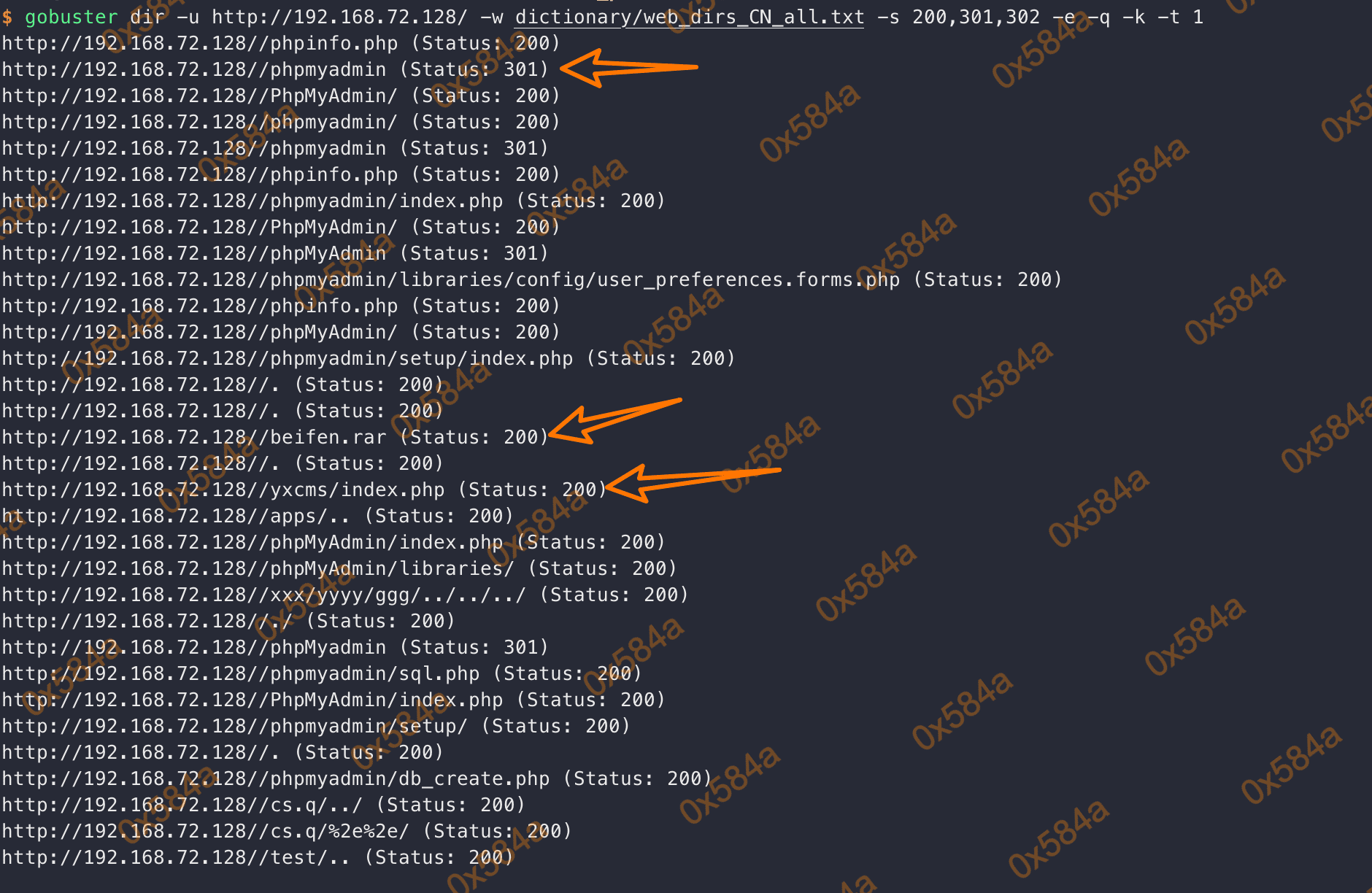 对目录进行枚举,发现存在 phpmyadmin,beifen.rar