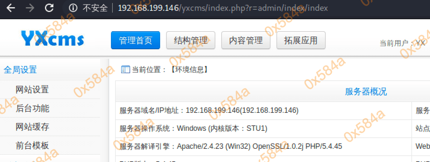 beifen.rar解压后是 yxcms 的备份,路径输入 /yxcms 后可以看到是一个企业信息管理系统。