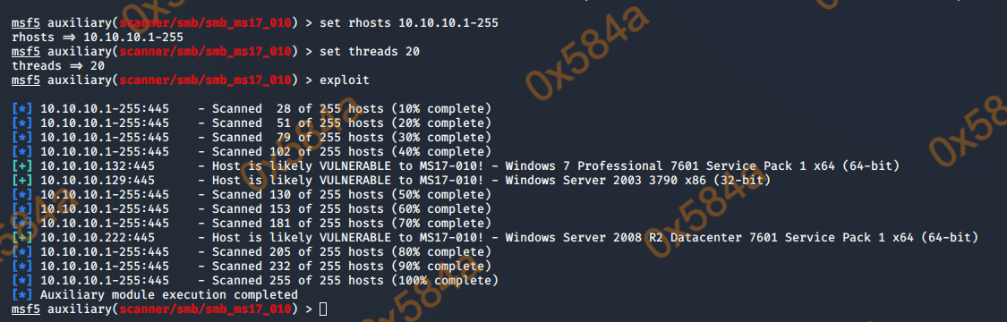 从扫描结果中看到,该机器为 Win7 ,在关防火墙的情况下使用 ms17-010 可以直接打下来,这是第一种获取shell的方式。