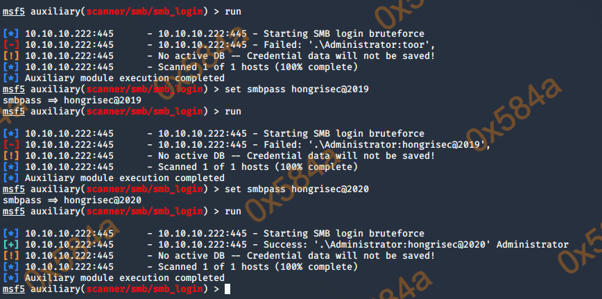 对已获取的 Administrator 密码进行枚举,成功枚举出了靶机三的密码(我更改了默认密码)