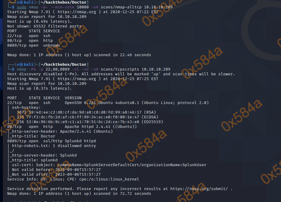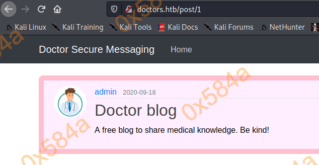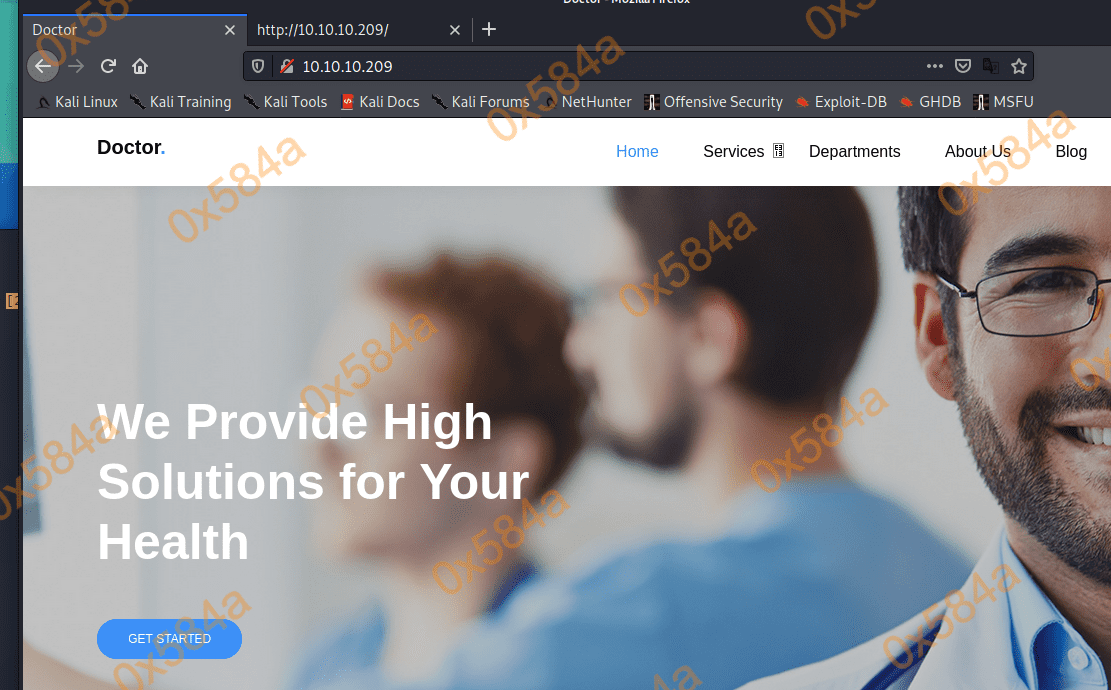 目前来看80端口上部署的是一个静态网站,就一个有用的信息 info@doctors.htb ,看来是需要改 hosts 文件的指向了。