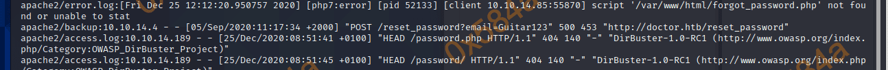 后来还是翻 linpeas 的时候看到一个 backup 文件,里面有一条重置密码,但返回的是后端500错误。而这个 /rest_password 就是先前 burp 里看到的那条…