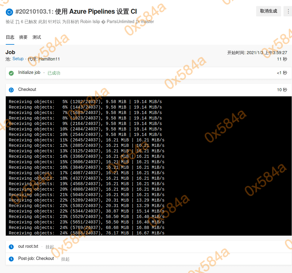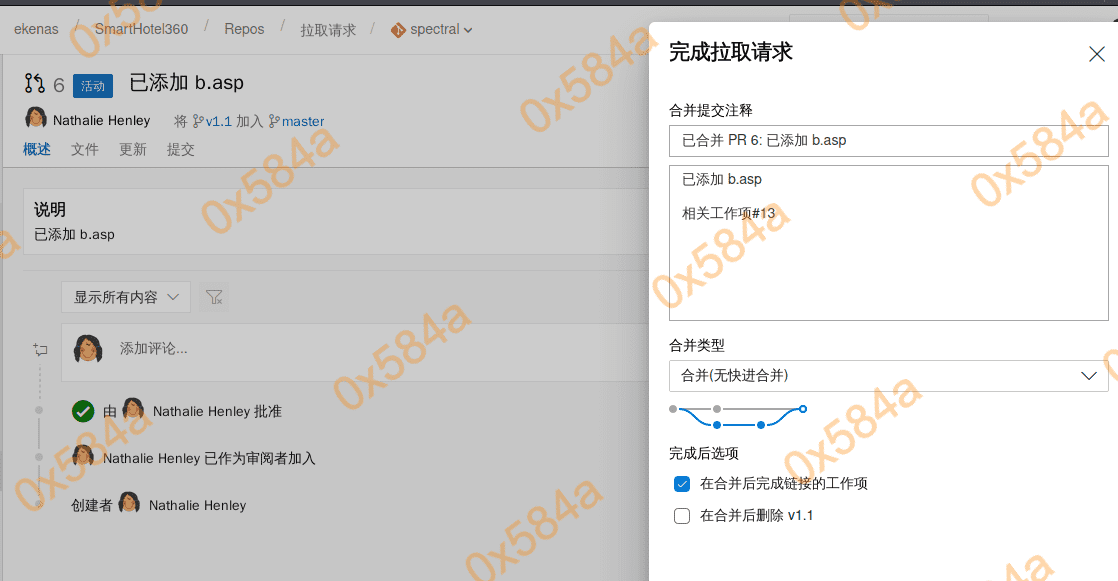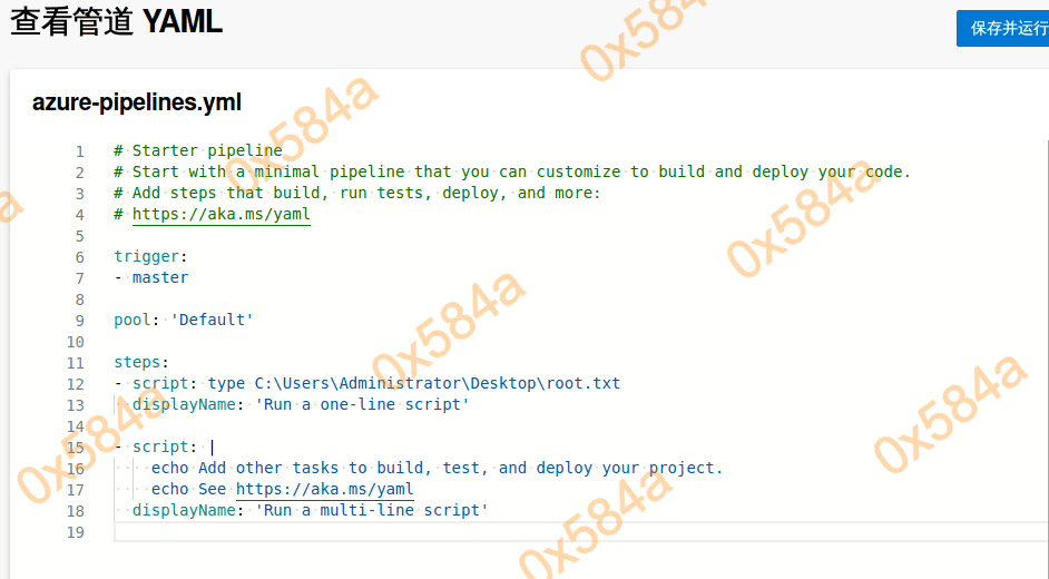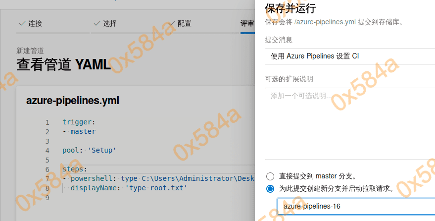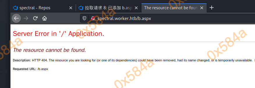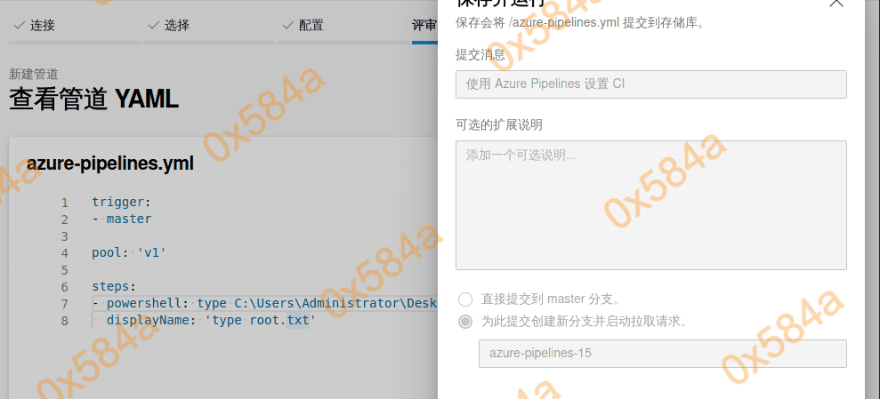这里我首先上传的是一个 asp 脚本,合并成功后 azure devops 会自动去发布部署,访问后发现 404 不解析。换了一个 aspx 的脚本就正常了。(https://github.com/ysrc/webshell-sample.git)
