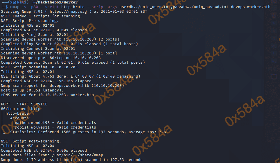 将用户名和密码分离出来并去重,使用 nmap 的脚本进行爆破。https://nmap.org/nsedoc/scripts/http-brute.html 这是是我在搜索 ntlm authentication 时找到的,用起来好像还行。