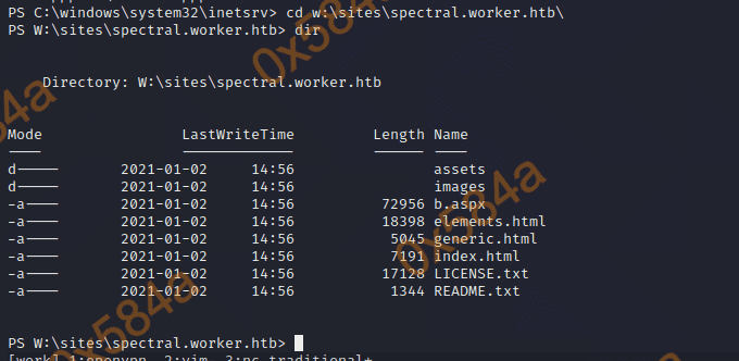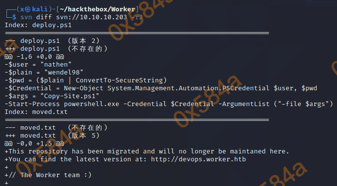 都看了一遍,均是静态页面没什么收货。检查的代码也均是静态文件,不过有个 moved.txt 文件,里面含有新的提示。大意是通过svn部署的方式已经不用了,改用自动发布了,对应的域名是 devops.worker.htb