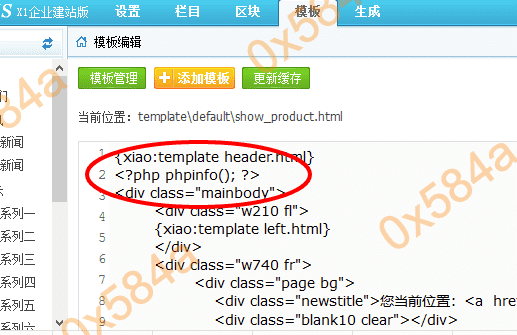 因为是在本地测试,本着 见框就X 的原则,尝试一遍后台所有能看到的输入框。随后在模板编辑方法内,找到可以 getshell 的方法。