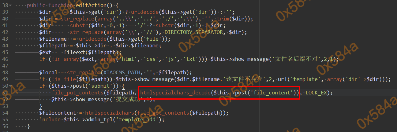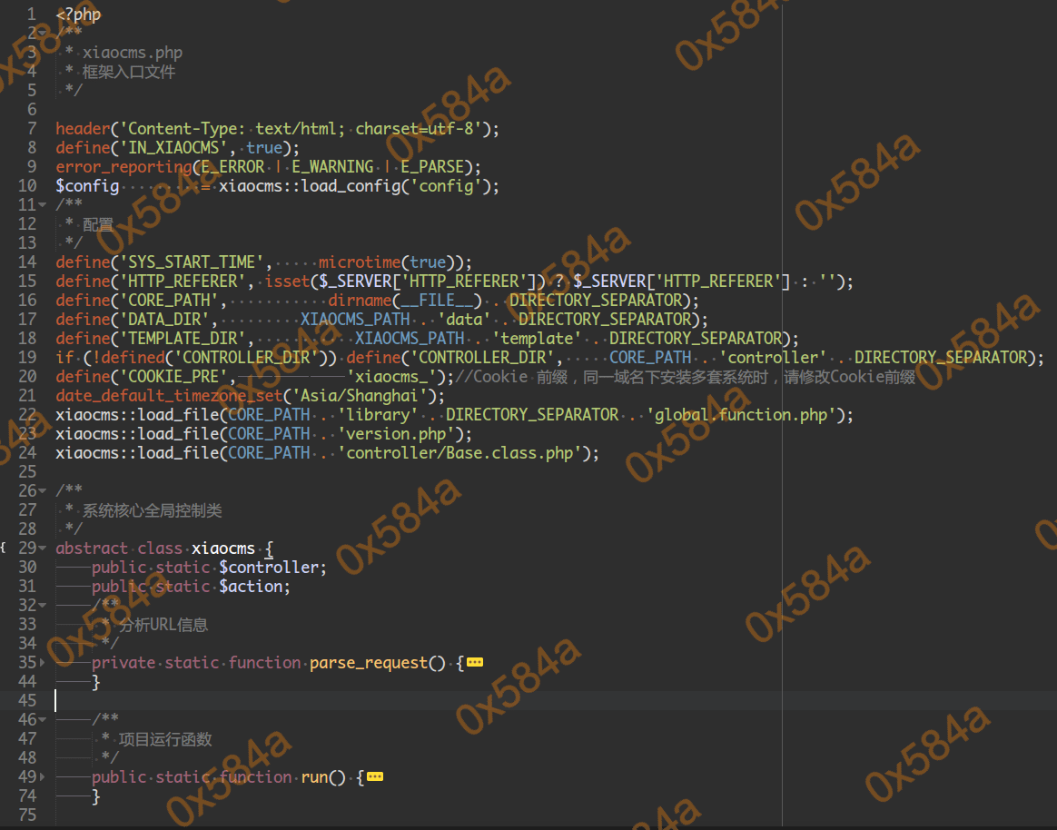为了验证我的猜想,在 github 上找到了一个 2017年7月18日 前的版本:https://github.com/xyyphp/xiaocms/blob/master/core/controller/Base.class.php