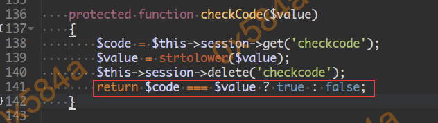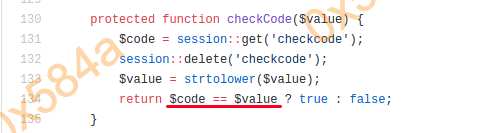 验证跟踪至此处,其代码在校验之前会删除 session 中的值,但变量依然存在的所以本次校验依然有效。只有当第二次请求过来时,才会赋值给 $code 变量一个空值。但是,这特么是全等符。难道被修复了?