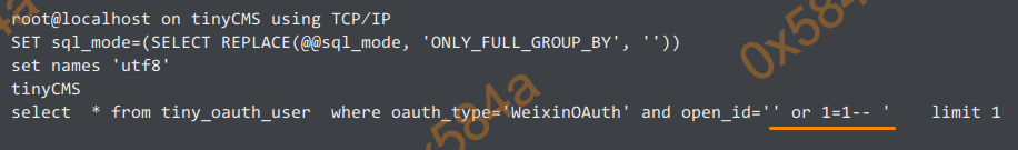 好了,我们去除调试用的 var_dump($weixin_openid);exit();,看看是否被带入到SQL中: